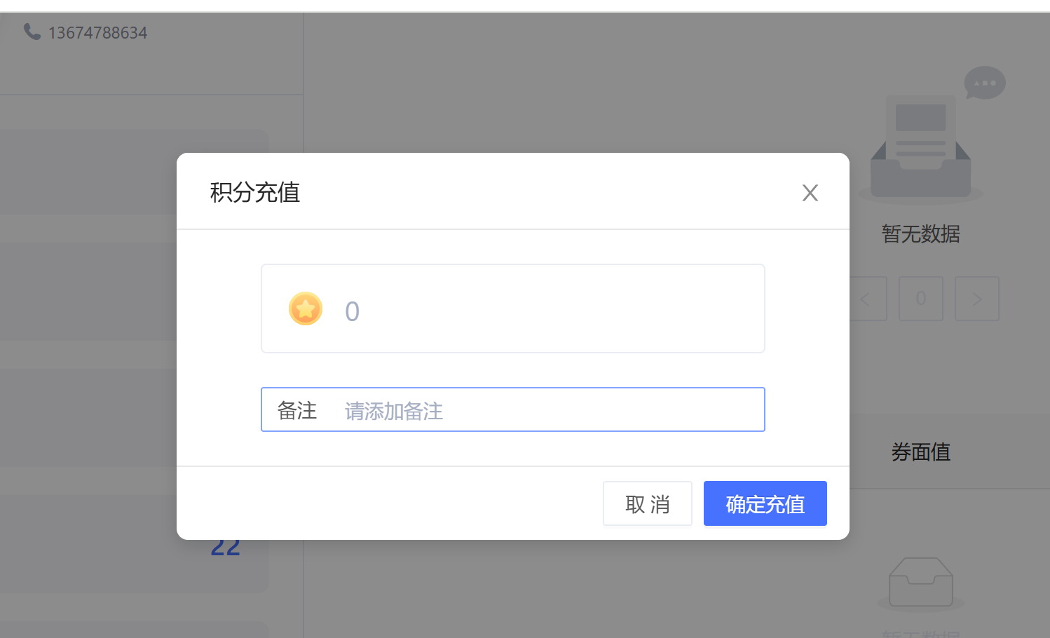 4.后台会员和积分充值增加备注输入