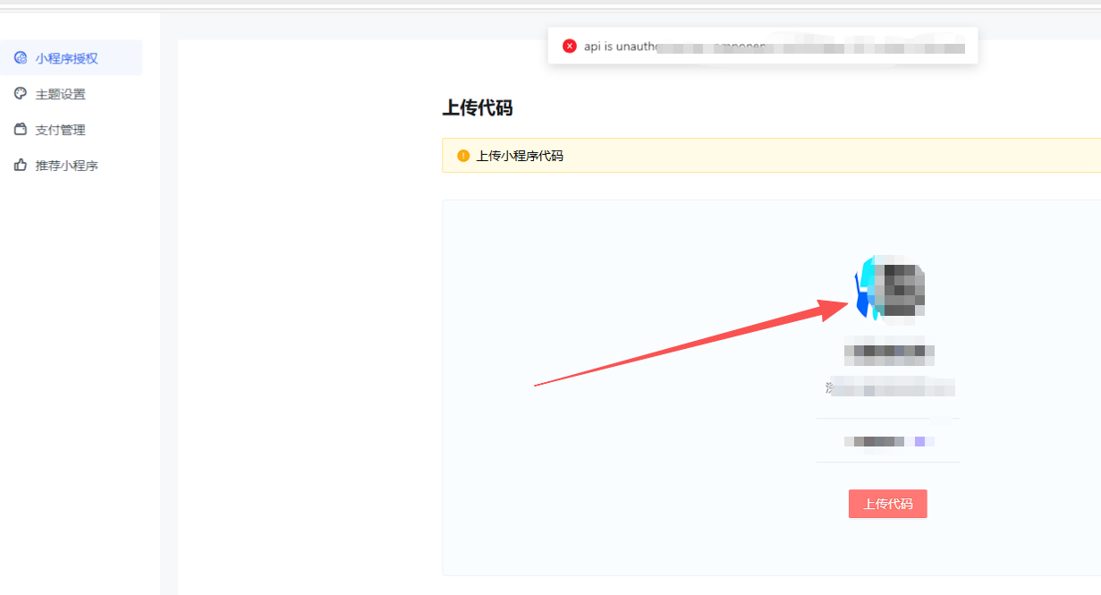 上传小程序代码报错: api is unauthorized to component rid: 6928fbcc-0311ea2d-247adadd