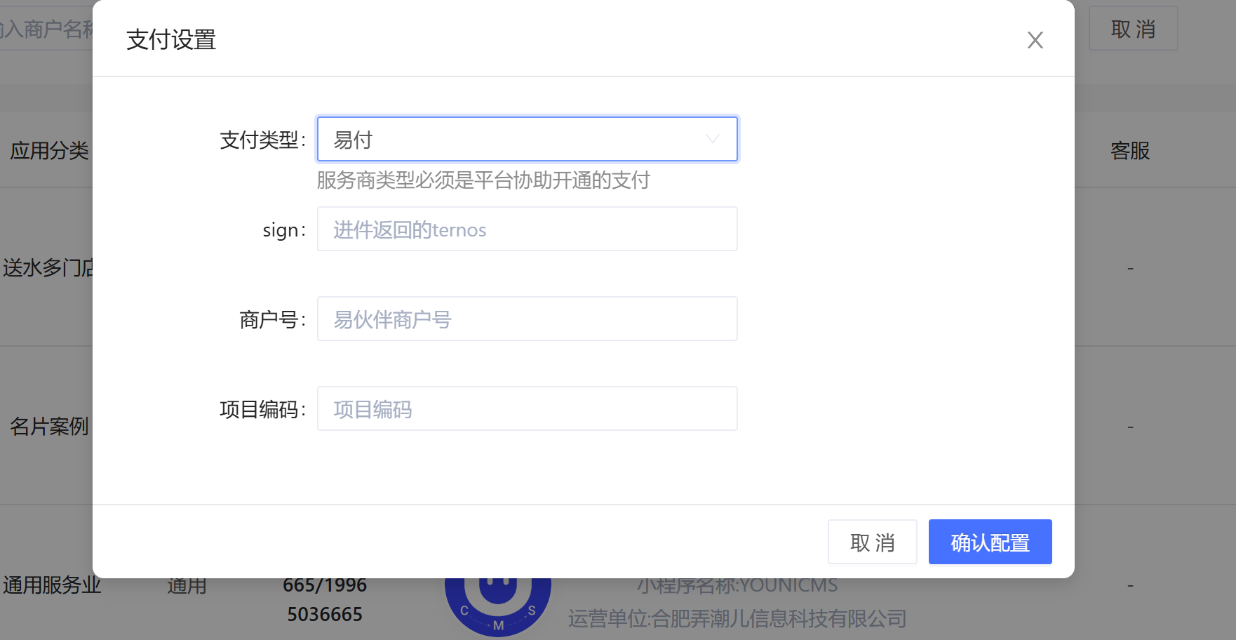 2.新增易伙伴支付,平台可以给商户配置对应的支付方式