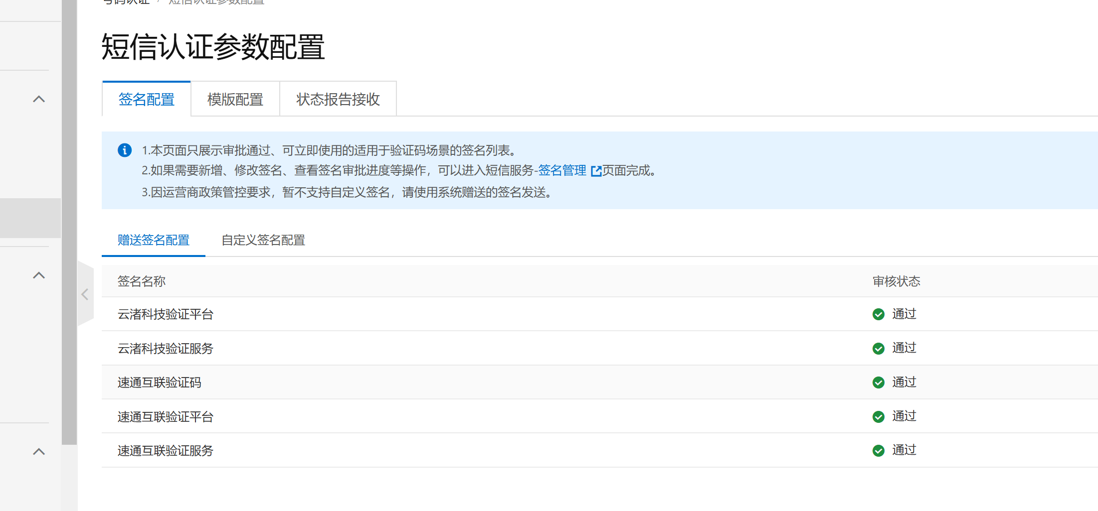 短信签名和短信模板只能选择阿里云现有的签名和模板