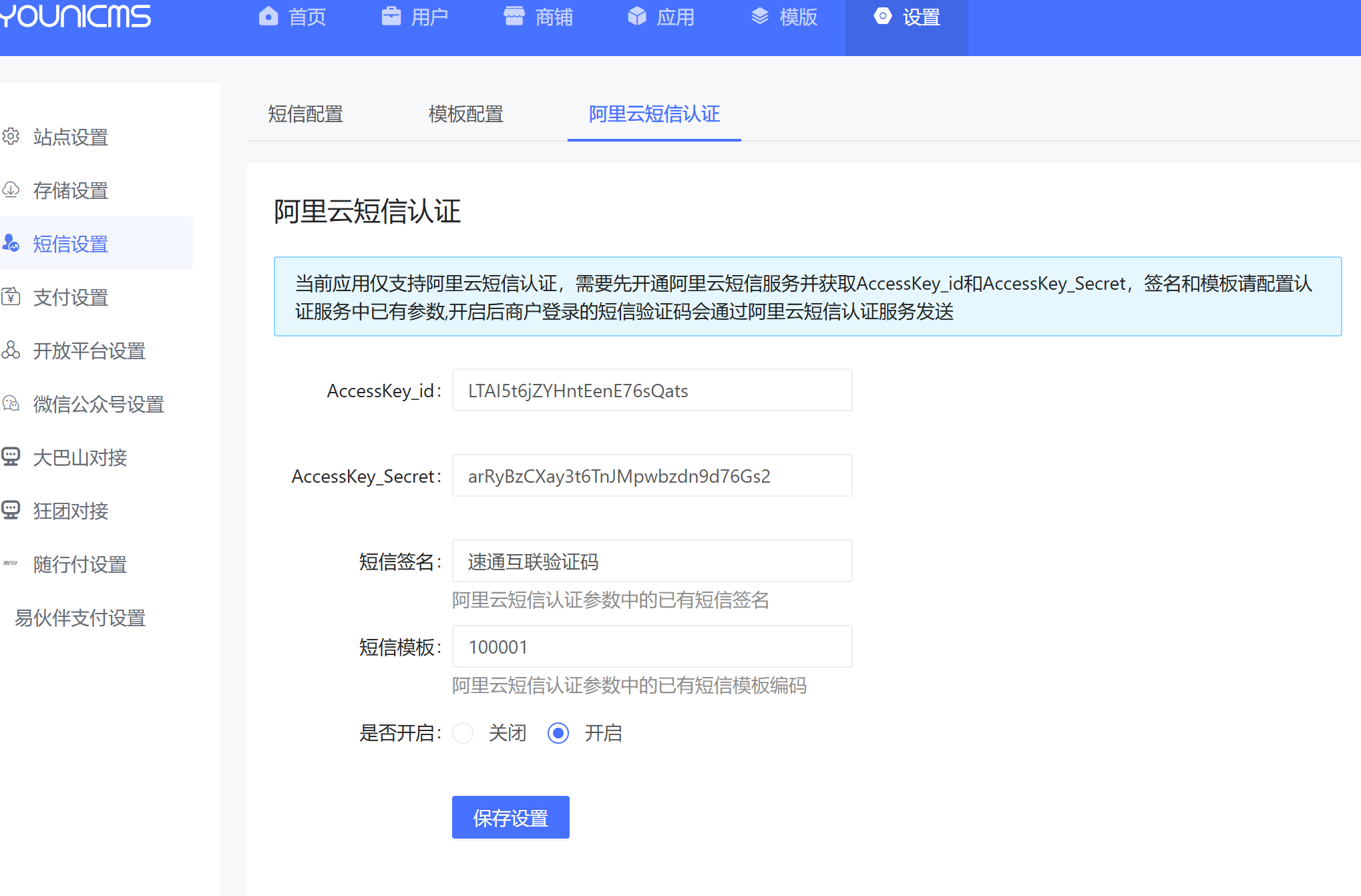 1.新增阿里云号码认证服务,商户短信验证码登录可以使用阿里云号码认证服务发送短信,这里开启之后商户登录的验证码短信会从这里获取