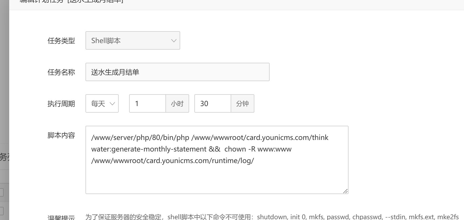 /www/server/php/80/bin/php /网站根目录/think water:generate-monthly-statement && chown -R www:www /网站根目录/runtime/
